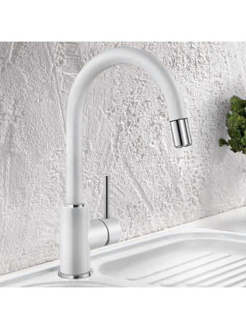 BLANCO Mida-S Silgránit-look kihúzható fejes magasnyomású mosogató csaptelep, silgranit fehér 521457