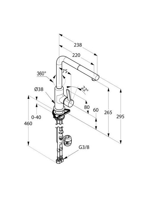 Kludi L-INE S egykaros mosogatócsaptelep ECO funkcióval, kih