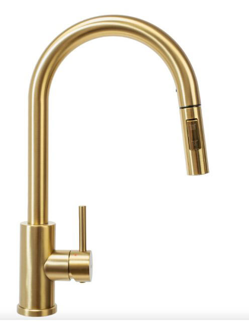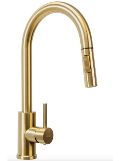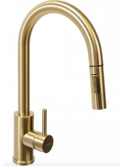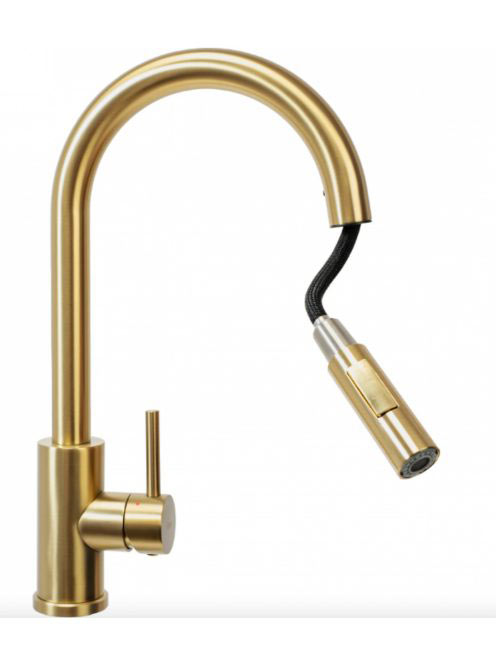 Rea Fresh álló konyhai csaptelep kihúzható zuhanyfejjel, szálcsiszolt arany REA-B9148