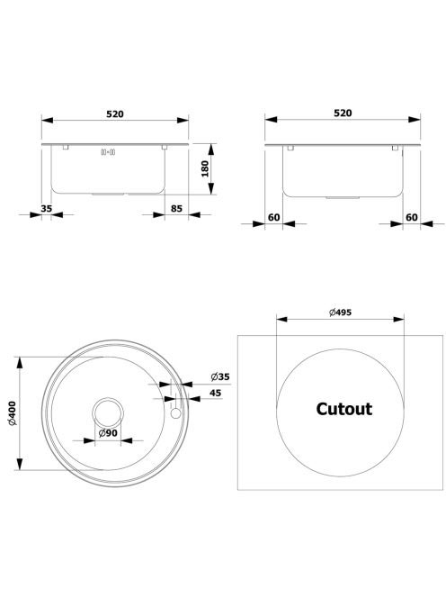 Aqualine beépíthető mosogatótálca 51x18 cm, inox AQ051B - Ko