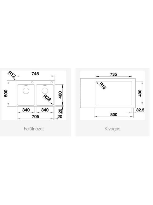 BLANCO Andano 340/340-IF/A rozsdamentes acél mosogató excentBLANCO Andano 340/340-IF/A rozsdamentes acél mosogató excent