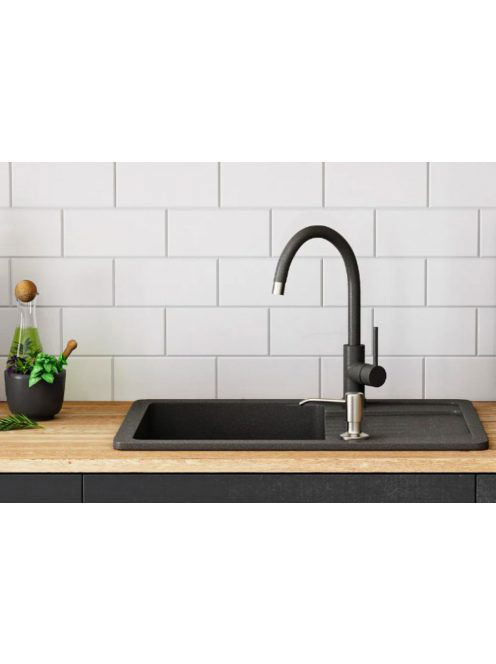 Rea Dag gránit mosogató csepegtetővel 75x43,5 cm, lefolyó garnitúrával, fekete mintás ZLE-00112