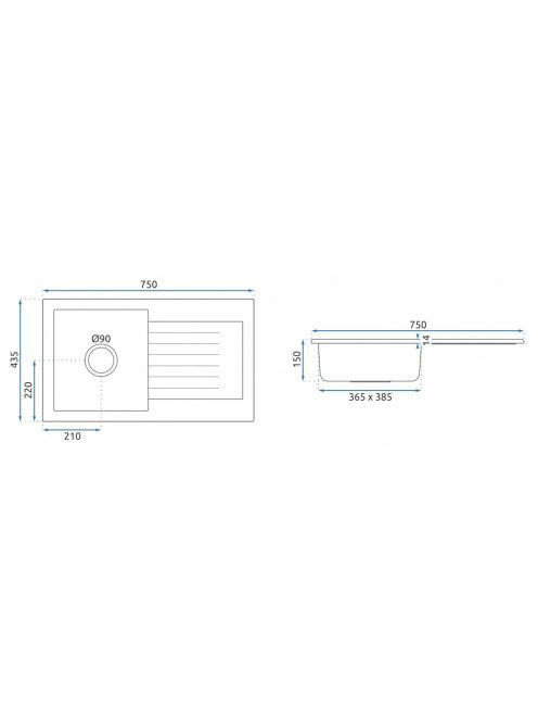 Rea Dag gránit mosogató csepegtetővel 75x43,5 cm, lefolyó gaRea Dag gránit mosogató csepegtetővel 75x43,5 cm, lefolyó ga