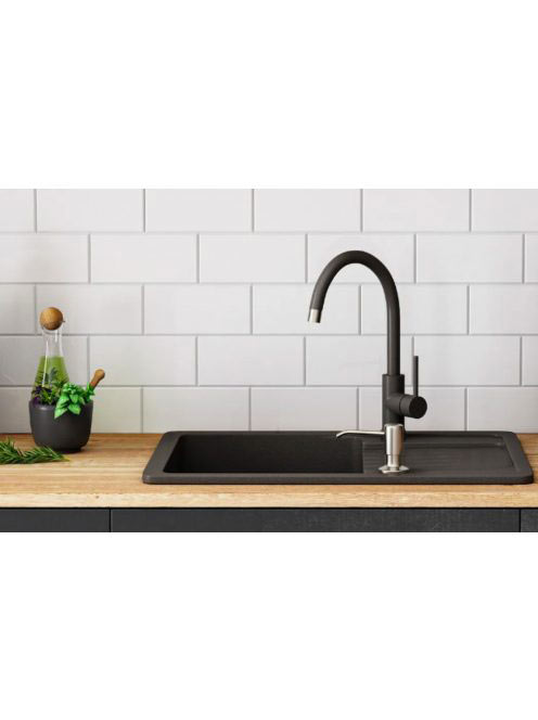 Rea Dag gránit mosogató csepegtetővel 75x43,5 cm, lefolyó garnitúrával, fekete ZLE-00111