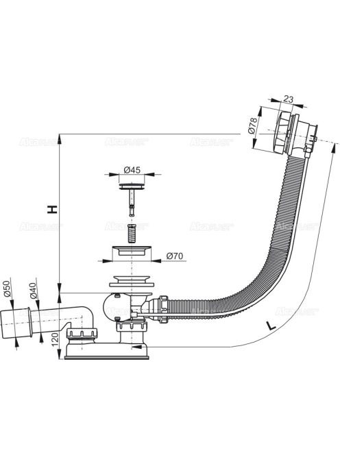 Alcaplast - Automata kádszifon készlet fém A55K - Fürdőszoba