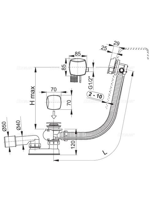 Alcaplast - Automata kádszifon túlfolyóval, kádtöltő funkcióAlcaplast - Automata kádszifon túlfolyóval, kádtöltő funkció
