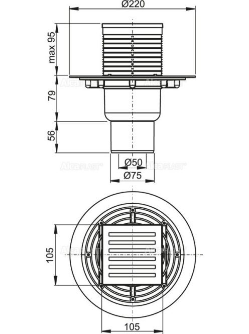 Alcaplast - Padlóösszefolyó 105×105/50/75 mm APV203 - Fürdős