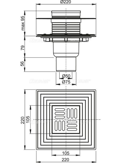 Alcaplast - Padlóösszefolyó 105×105/50/75 mm APV2324 - Fürdő