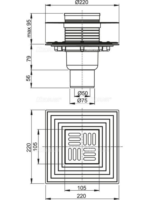 Alcaplast - Padlóösszefolyó 105×105/50/75 mm APV4344 - Fürdő