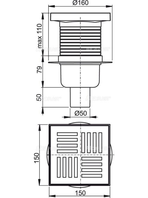Alcaplast - Padlóösszefolyó 150×150/50 mm APV6211 - Fürdőszo
