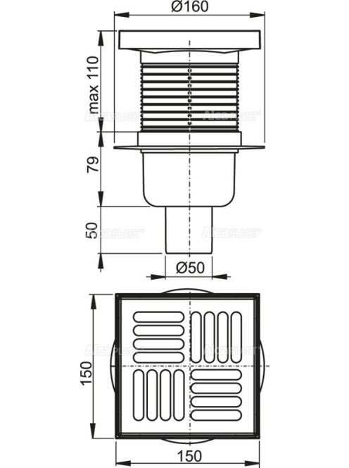 Alcaplast - Padlóösszefolyó 150×150/50 mm APV6411 - Fürdőszo