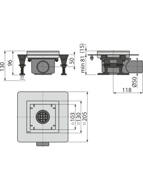 Alcaplast - Rozsdamentes padlóösszefolyó 130×130 mm APV120 -