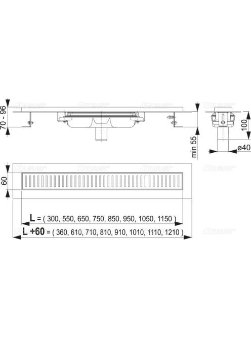 Alcaplast Low - Zuhanyfolyóka 300mm, függőleges lefolyóval A