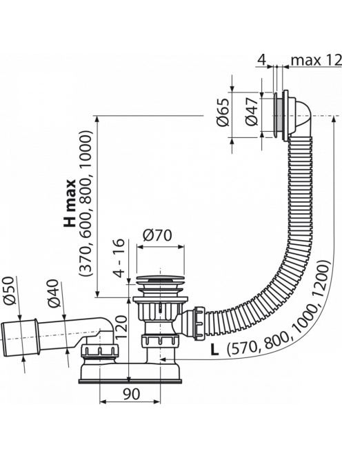 Alcaplast - CLICK/CLACK kádszifon készlet króm A505CRM - Für