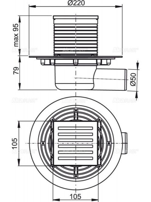 Alcaplast - Padlóösszefolyó 105×105/50 mm APV103 - Fürdőszob