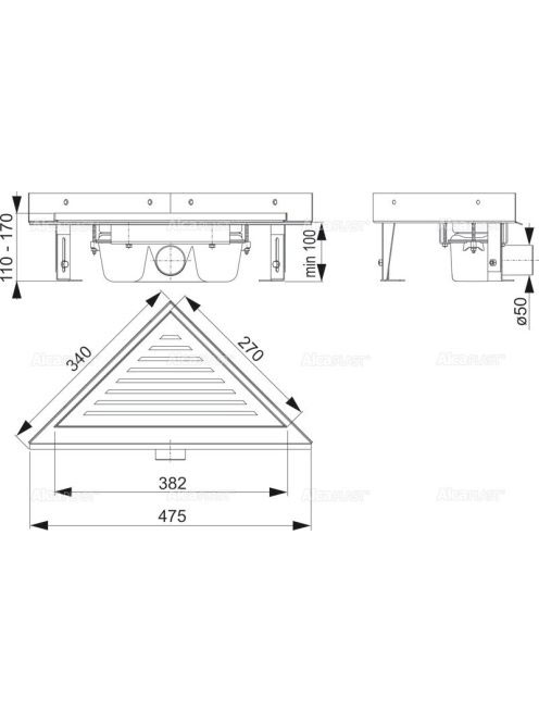 Alcaplast - Sarokba építhető zuhanyfolyóka ARZ1