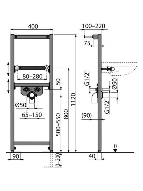 Alcaplast Szerelőkeret mosdóhoz A104/1120 - Fürdőszoba - Fal