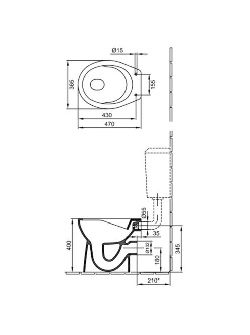 Alföldi Bázis laposöblítésű WC csésze 36,5x47 hátsó kifolyás