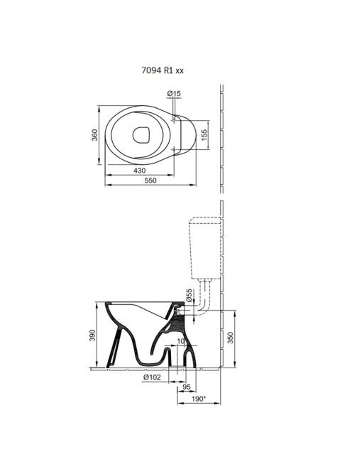Alföldi Bázis mélyöblítésű WC csésze 36x55 alsó kifolyással,
