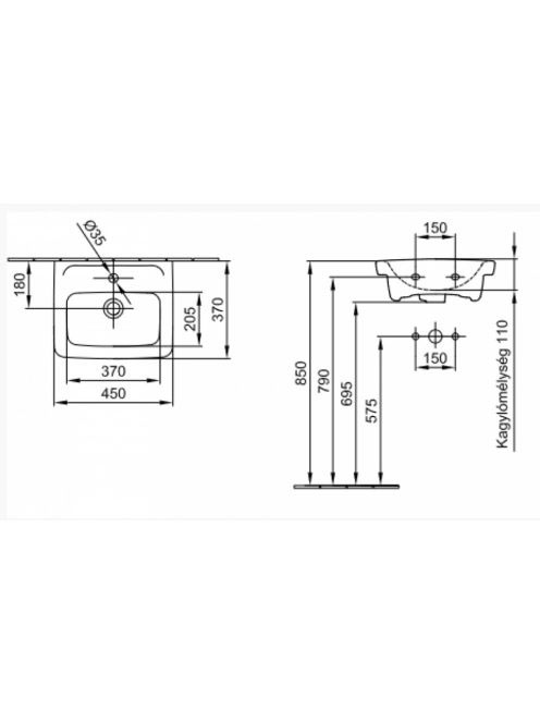 Alföldi Optic kerámia mosdó 45x37 cm túlfolyóval és csaplyuk