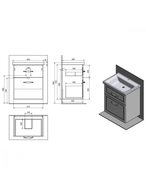 Aqualine Favolo 2 fiókos fali mosdószekrény 61,5x72,5x43,5 c