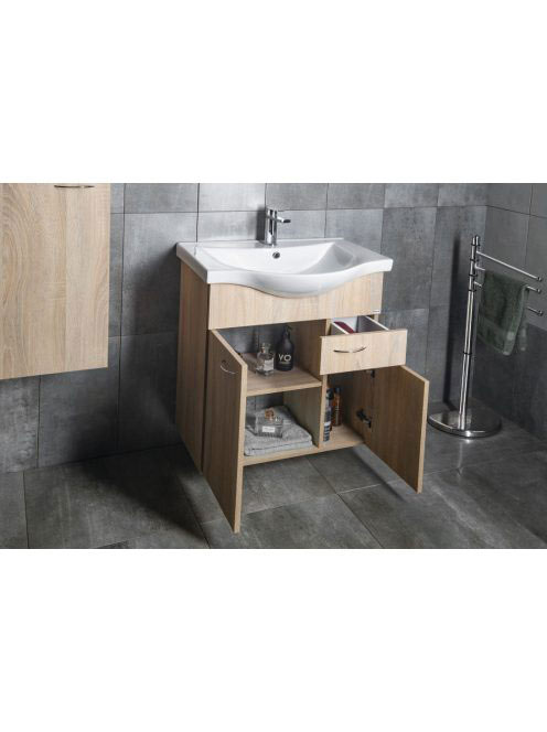 Aqualine Keramia Fresh fali mosdószekrény 60,6x74x34 platina tölgy 50066