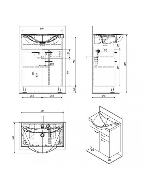 Aqualine Keramia Fresh fali mosdószekrény 60,6x74x34 platinaAqualine Keramia Fresh fali mosdószekrény 60,6x74x34 platina