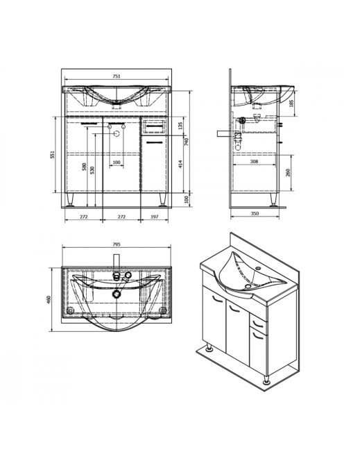 Aqualine Keramia Fresh fali mosdószekrény 75,1x74x35 platina