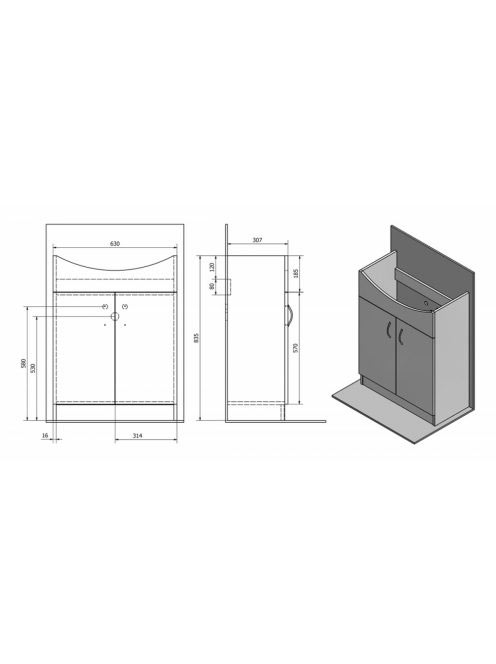 Aqualine Simplex Eco 65 álló mosdótartó szekrény mosdóval 63Aqualine Simplex Eco 65 álló mosdótartó szekrény mosdóval 63