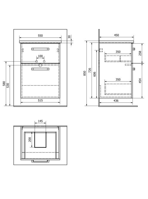 Aqualine Vega 2 fiókos mosdótartó szekrény 51,5x72,6x43,6 cmAqualine Vega 2 fiókos mosdótartó szekrény 51,5x72,6x43,6 cm