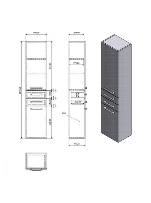 Aqualine Vega állószekrény szennyestartóval 40x184x31 cm, ba