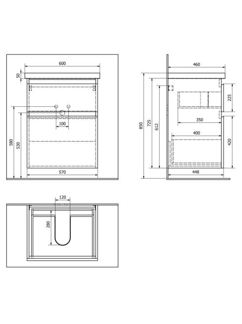 Aqualine Altair 2 fiókos fali mosdótartó szekrény 57x44,8 cmAqualine Altair 2 fiókos fali mosdótartó szekrény 57x44,8 cm