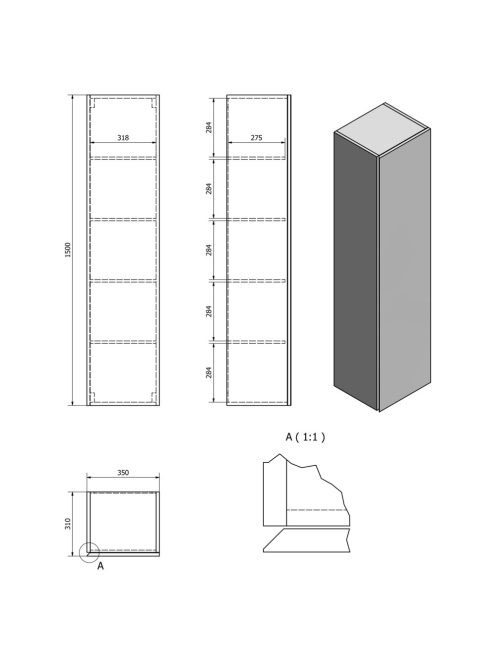 Aqualine Altair egy ajtós faliszekrény 35x150x31cm, emporioAqualine Altair egy ajtós faliszekrény 35x150x31cm, emporio