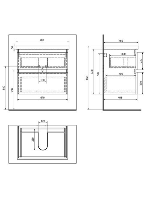 Aqualine Altair fiókos mosdószekrény 67x60x44,8 cm fehér AI2