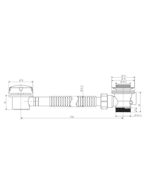 Aqualine automata kád le-és túlfolyó, szifon nélkül, króm TY