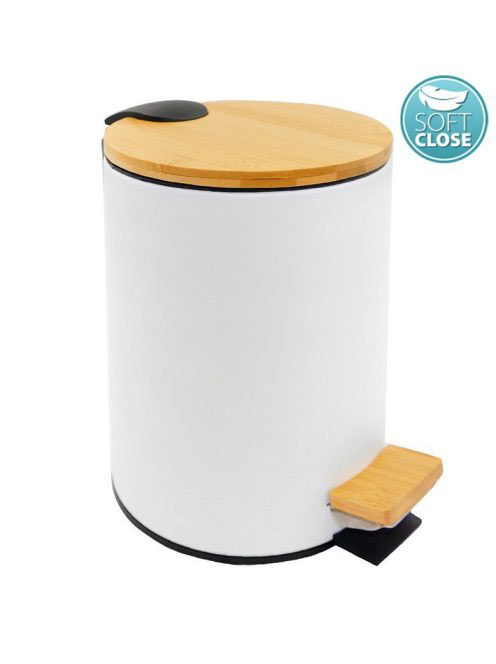Aqualine Bambus szemetes 3l, Soft Close, fehér BI006 - FürdőAqualine Bambus szemetes 3l, Soft Close, fehér BI006 - Fürdő
