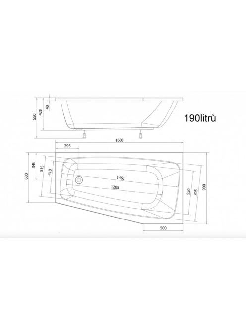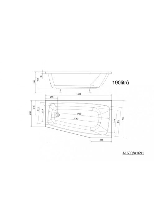 Aqualine Berounka akril kád 160x90x42 cm, jobb, láb nélkül A