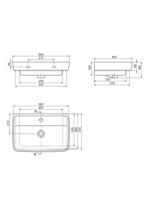 Aqualine Duru kerámia mosdó 60x40 túlfolyóval TU0351 - Fürdő