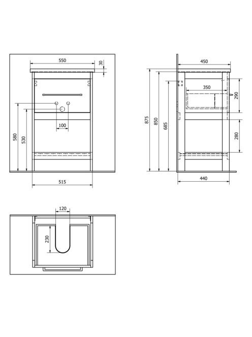 Aqualine Etide 1 fiókos mosdótartó szekrény 51,5x85x44 cm, m