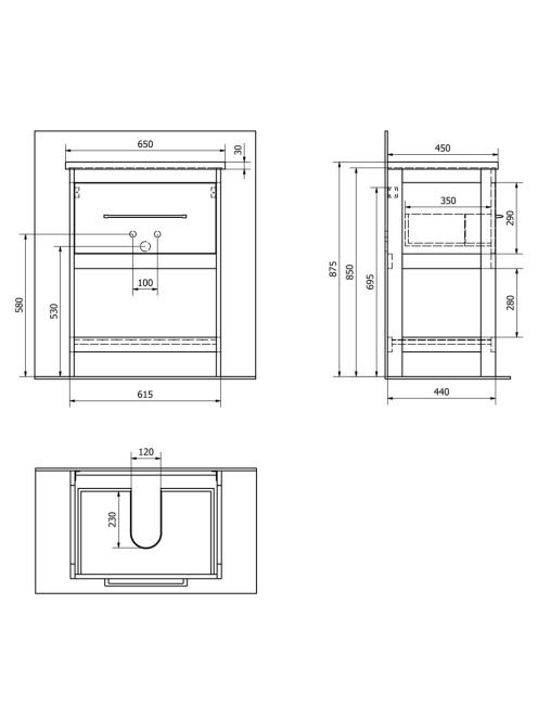 Aqualine Etide 1 fiókos mosdótartó szekrény alsó polccal 61,Aqualine Etide 1 fiókos mosdótartó szekrény alsó polccal 61,