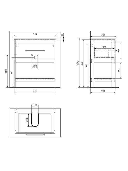Aqualine Etide 1 fiókos mosdótartó szekrény alsó polccal 71,