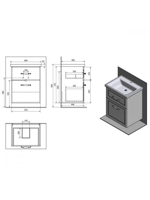 Aqualine Favolo 2 fiókos fali mosdótartó szekrény 57x44,6 cmAqualine Favolo 2 fiókos fali mosdótartó szekrény 57x44,6 cm