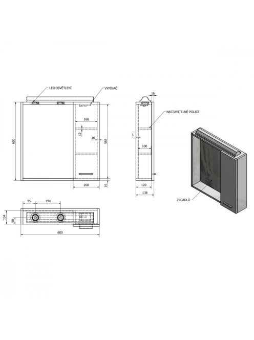 Aqualine Keramia Fresh jobbos tükrösszekrény LED világítássa