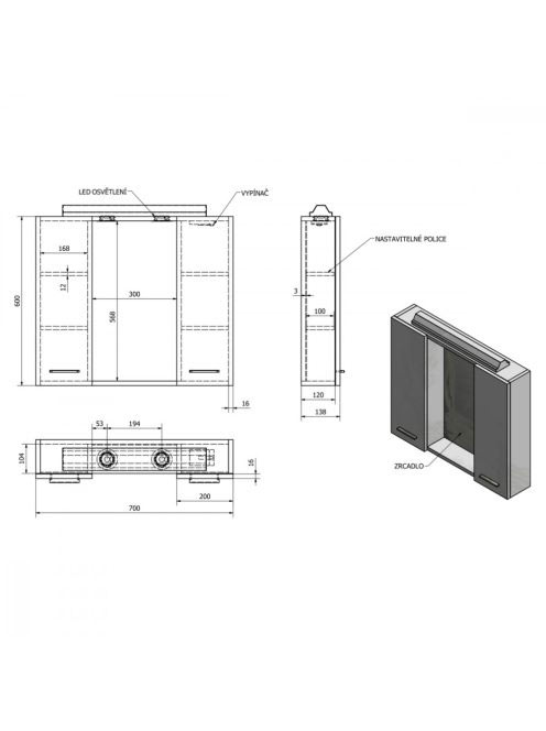 Aqualine Keramia Fresh tükrösszekrény LED világítással, kapc