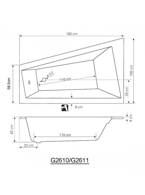 Aqualine METUJE akril kád 160x100x47 cm, bal, láb nélkül, G2