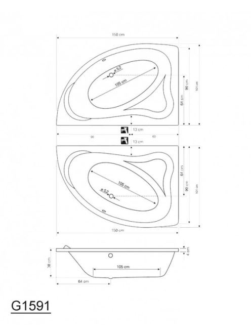 Aqualine Orava, Akril kád, 150x101 cm, jobb, G1591 - FürdőszAqualine Orava, Akril kád, 150x101 cm, jobb, G1591 - Fürdősz