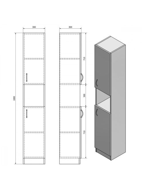 Aqualine Simplex Eco 2 ajtós állószekrény 30x180x30 matt feh