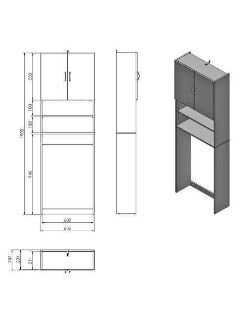 Aqualine Simplex Eco állószekrény mosógép fölé, 63x25x190 feAqualine Simplex Eco állószekrény mosógép fölé, 63x25x190 fe