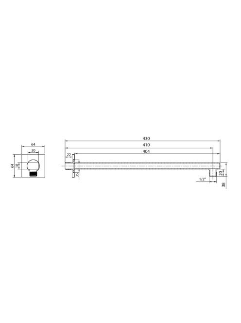 Aqualine szögletes zuhanykar 400 mm rozsdamentes acél, króm