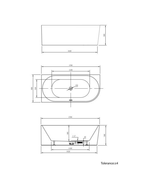 Aqualine Tibera L szabadonálló kád, 170x80cm, akril (E1026)